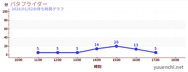 2026/01/02の待ち時間グラフ (バタフライダー)