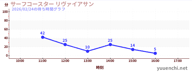 2026/02/24の待ち時間グラフ (サーフコースター リヴァイアサン)