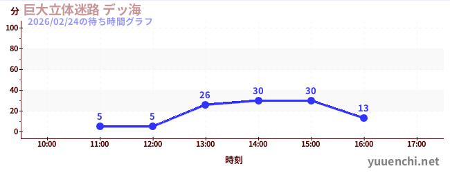 2026/02/24の待ち時間グラフ (巨大立体迷路 デッ海)