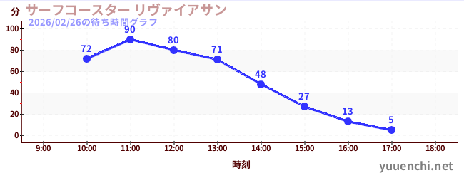 2026/02/26の待ち時間グラフ (サーフコースター リヴァイアサン)