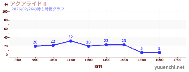 2026/02/26の待ち時間グラフ (アクアライドⅡ)