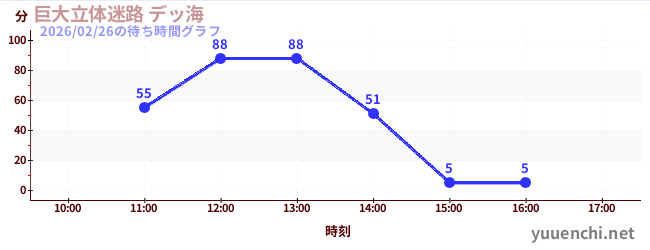 2026/02/26の待ち時間グラフ (巨大立体迷路 デッ海)