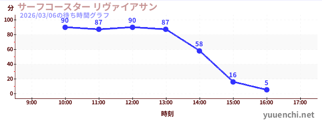 2026/03/06の待ち時間グラフ (サーフコースター リヴァイアサン)