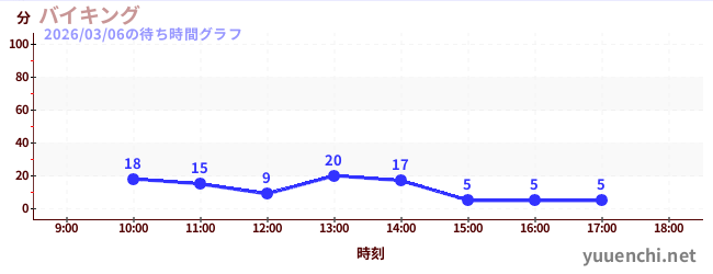 2026/03/06の待ち時間グラフ (バイキング)