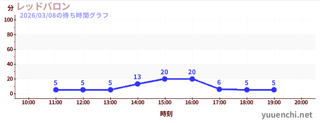 2026/03/08の待ち時間グラフ (レッドバロン)