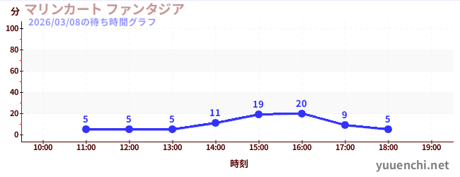 2026/03/08の待ち時間グラフ (マリンカート ファンタジア)