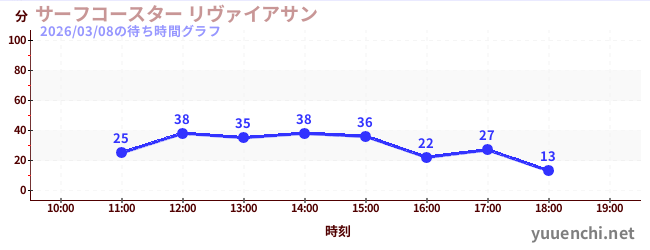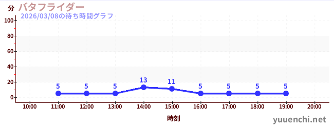 2026/03/08の待ち時間グラフ (バタフライダー)