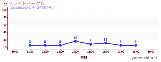 2026/03/08の待ち時間グラフ (フライトイーグル)