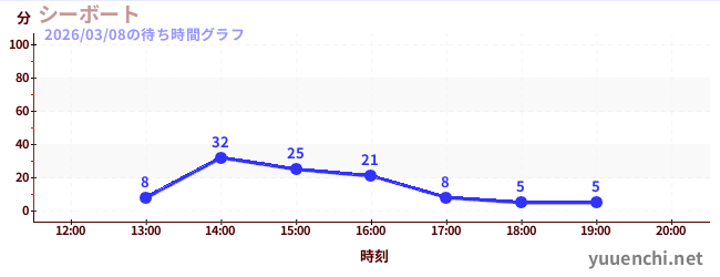 2026/03/08の待ち時間グラフ (シーボート)