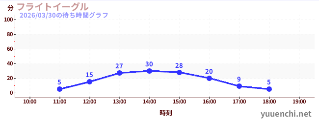 2026/03/30の待ち時間グラフ (フライトイーグル)