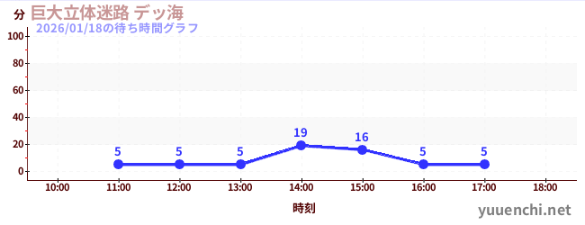 2026/01/18の待ち時間グラフ (巨大立体迷路 デッ海)