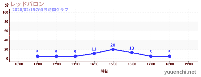 2026/02/15の待ち時間グラフ (レッドバロン)