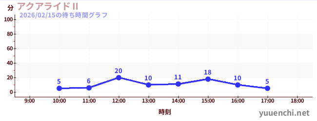 2026/02/15の待ち時間グラフ (アクアライドⅡ)