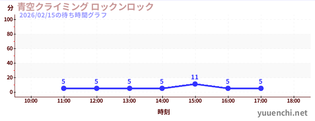 2026/02/15の待ち時間グラフ (青空クライミング ロックンロック)