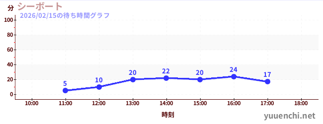 2026/02/15の待ち時間グラフ (シーパラダイスタワー)