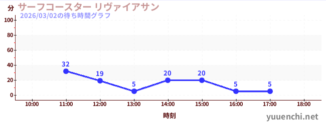 2026/03/02の待ち時間グラフ (サーフコースター リヴァイアサン)