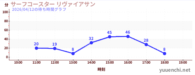 2026/04/12の待ち時間グラフ (サーフコースター リヴァイアサン)