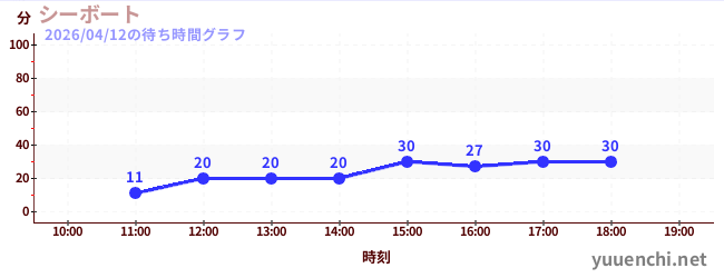 2026/04/12の待ち時間グラフ (シーパラダイスタワー)