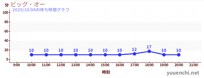 2025/10/04の待ち時間グラフ (ビッグ・オー)