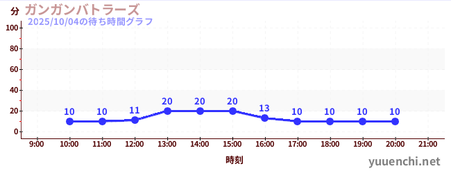 2025/10/04の待ち時間グラフ (ガンガンバトラーズ)