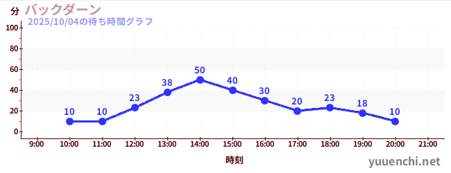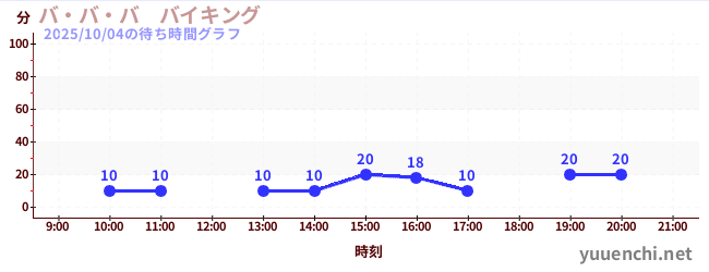 2025/10/04の待ち時間グラフ (バ・バ・バ バイキング)