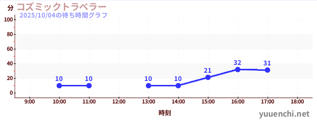 2025/10/04の待ち時間グラフ (コズミックトラベラー)