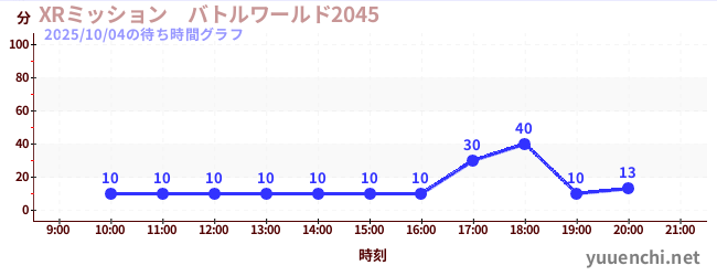 2025/10/04の待ち時間グラフ (XRミッション バトルワールド2045)