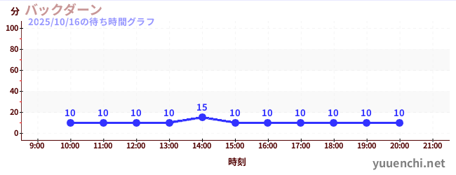 2025/10/16の待ち時間グラフ (ワンダードロップ)