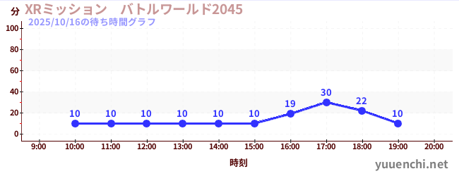 2025/10/16の待ち時間グラフ (XRミッション バトルワールド2045)