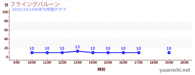 2025/10/16の待ち時間グラフ (フライングバルーン)
