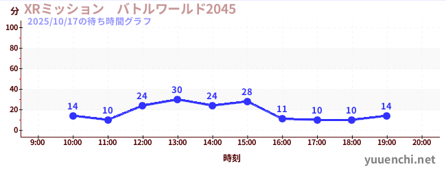 2025/10/17の待ち時間グラフ (XRミッション バトルワールド2045)