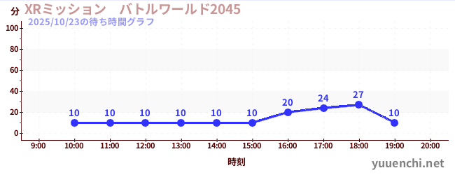 2025/10/23の待ち時間グラフ (XRミッション バトルワールド2045)