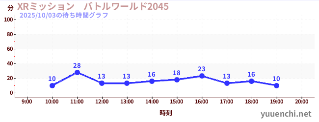 2025/10/03の待ち時間グラフ (XRミッション バトルワールド2045)