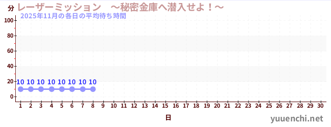 2025/11の一日平均待ち時間 (レーザーミッション ~秘密金庫へ潜入せよ!~)