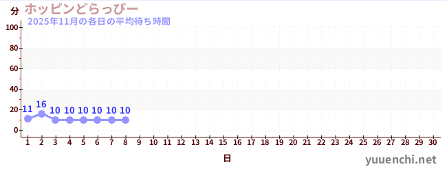 2025/11の一日平均待ち時間 (ホッピンどらっぴー)