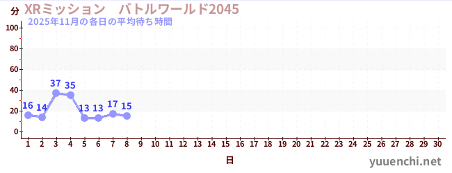 2025/11の一日平均待ち時間 (XRミッション バトルワールド2045)