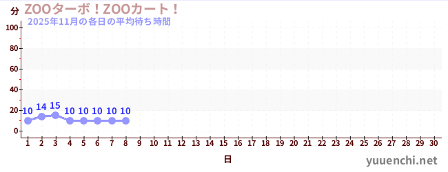 2025/11の一日平均待ち時間 (ZOOターボ!ZOOカート!)