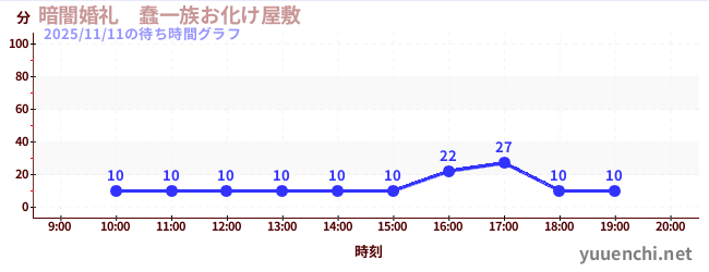 2025/11/11の待ち時間グラフ (暗闇婚礼 蠢一族お化け屋敷)