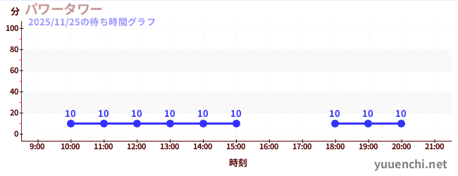 2025/11/25の待ち時間グラフ (ウォーターキャノン)