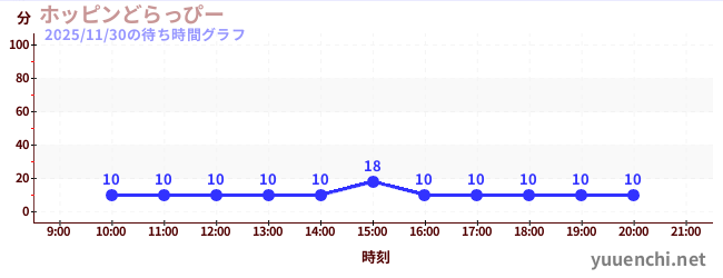 2025/11/30の待ち時間グラフ (ホッピンどらっぴー)