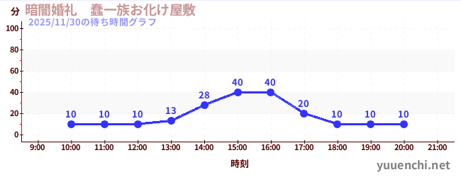 2025/11/30の待ち時間グラフ (暗闇婚礼 蠢一族お化け屋敷)