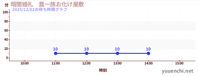 2025/12/02の待ち時間グラフ (暗闇婚礼 蠢一族お化け屋敷)