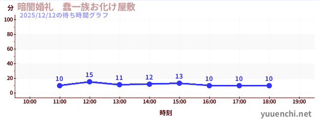 2025/12/12の待ち時間グラフ (暗闇婚礼 蠢一族お化け屋敷)