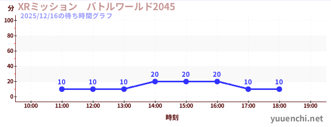 2025/12/16の待ち時間グラフ (XRミッション バトルワールド2045)