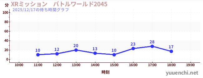 2025/12/17の待ち時間グラフ (XRミッション バトルワールド2045)