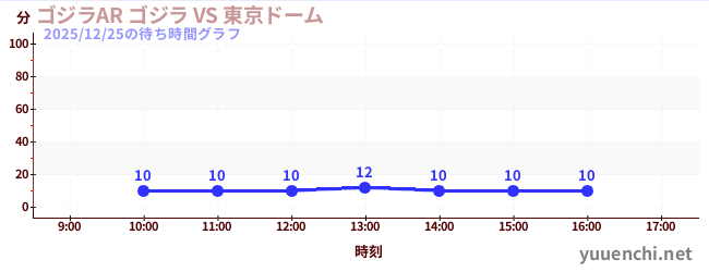 2025/12/25の待ち時間グラフ (ゴジラAR ゴジラ VS 東京ドーム)