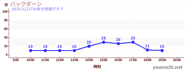 2025/12/27の待ち時間グラフ (ブンブンビー)