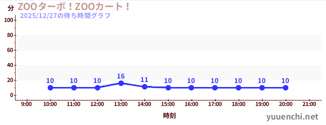 2025/12/27の待ち時間グラフ (ZOOターボ!ZOOカート!)