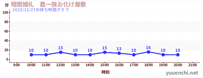 2025/12/27の待ち時間グラフ (暗闇婚礼 蠢一族お化け屋敷)