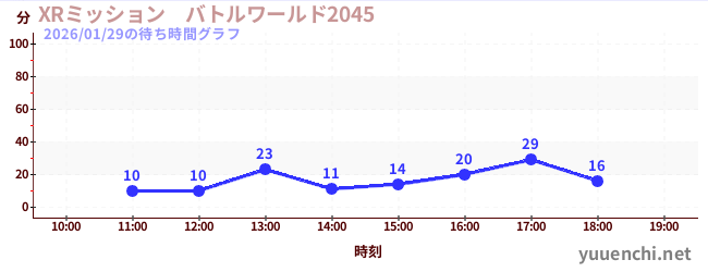2026/01/29の待ち時間グラフ (XRミッション バトルワールド2045)